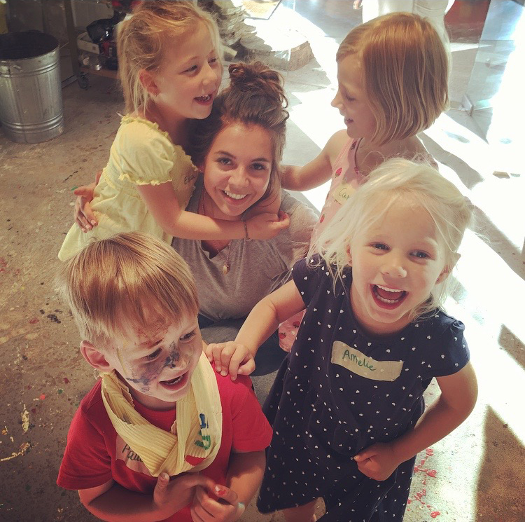 Bereits mit 14 Jahren begleitete sie Kurse für kleinere und größere Malschüler*innen als Helferin. Mit 18 Jahren gestaltete und leitete sie selbständig Kurse und Projekte. Dazu gehörten beispielsweise